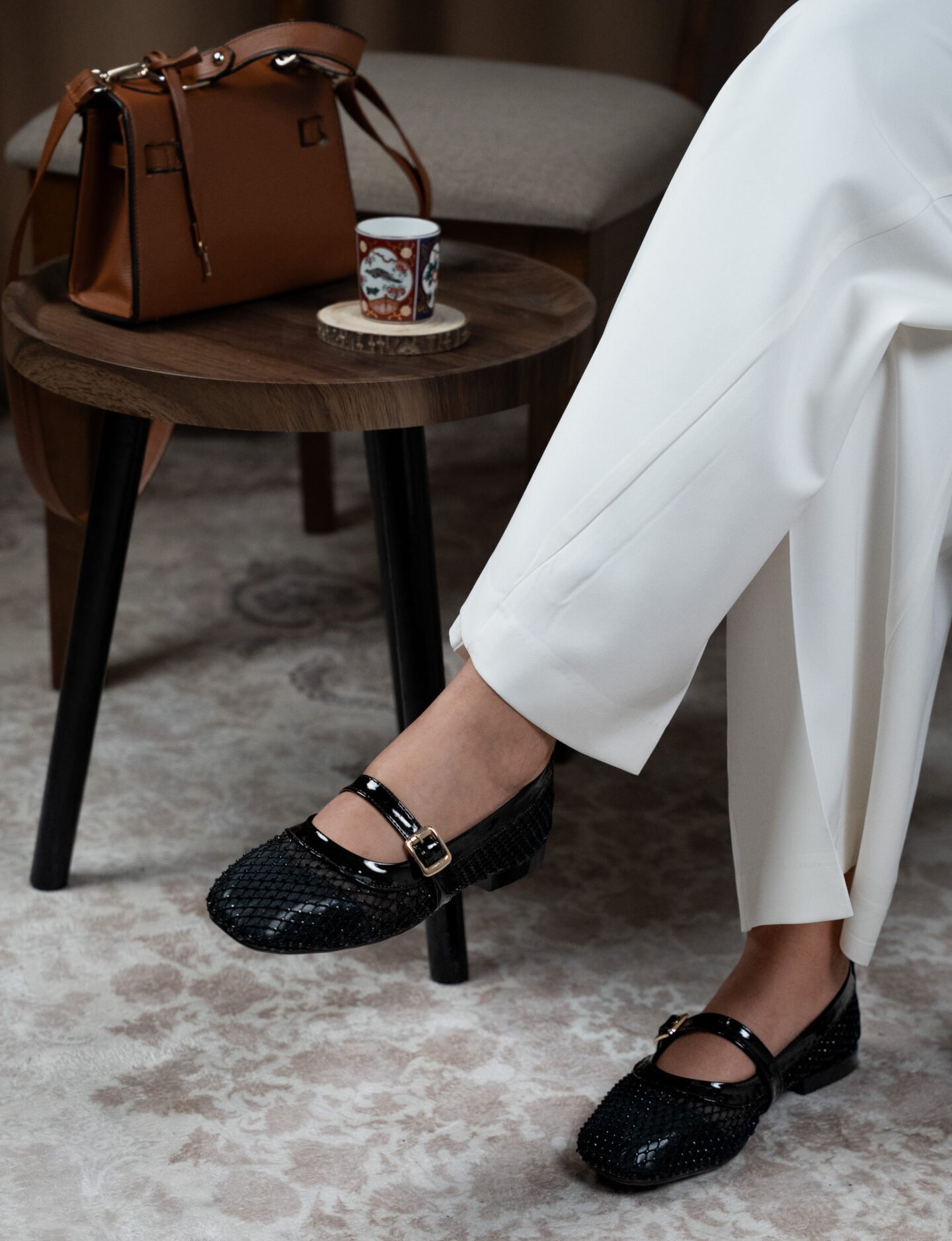 Les ballerines femme Camille de Moonlight Fashion incarnent l’élégance moderne avec une touche sophistiquée. Leur design raffiné associe une maille texturée subtilement brillante à une bride vernie délicate, créant un contraste chic et féminin.